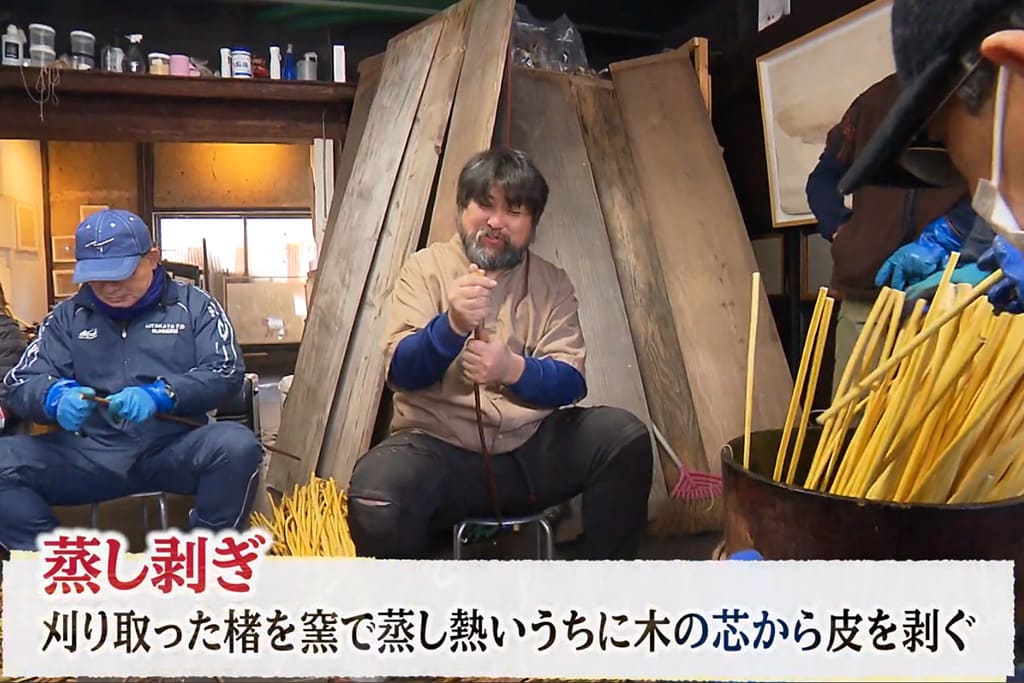 出ケ原和紙の制作は、まず、楮(こうぞ)や姫楮(ひめこうぞ)といった材料の蒸し剥ぎから始まります。